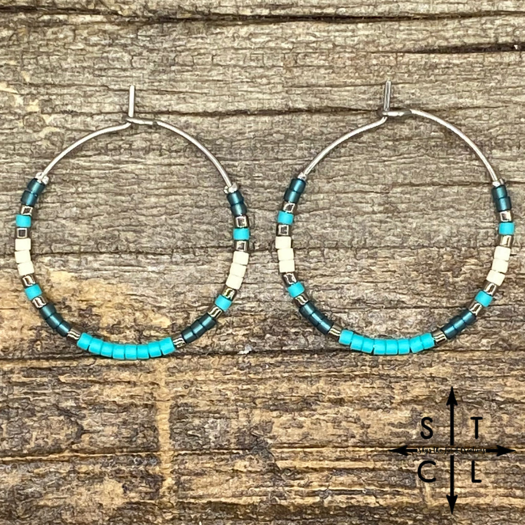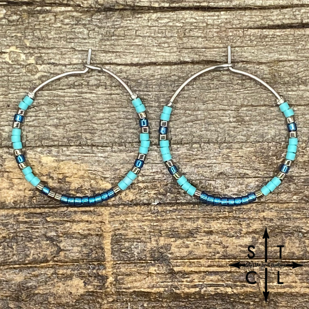 Metallic Bright Blue Gun Metal Silver Amber Earrings