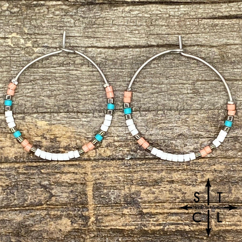 Turquoise Orange Gun Metal Silver Amber Earrings
