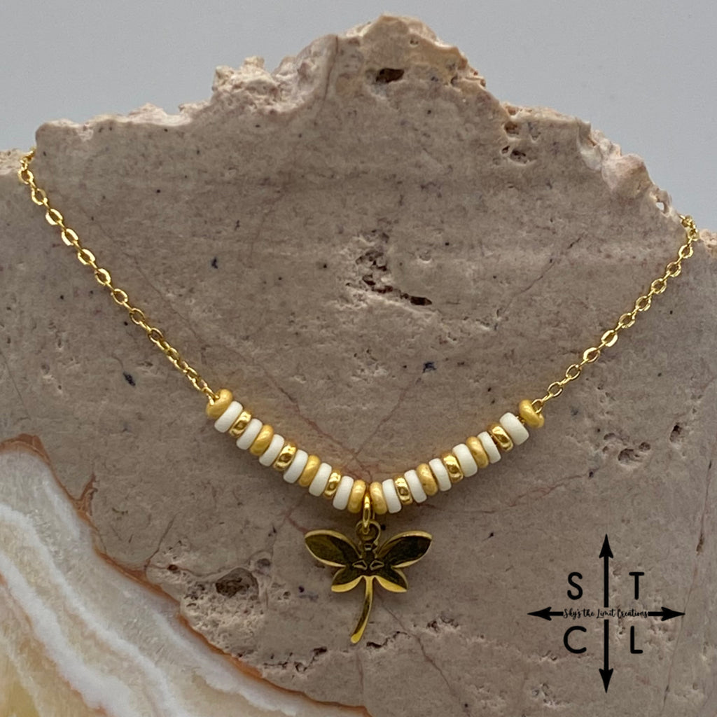 White Gold Matte Gold Dragon Fly Charm Necklace