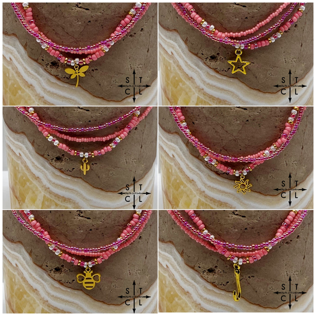 Pink Hot Pink Pearl White Silver Stretchy Anklet