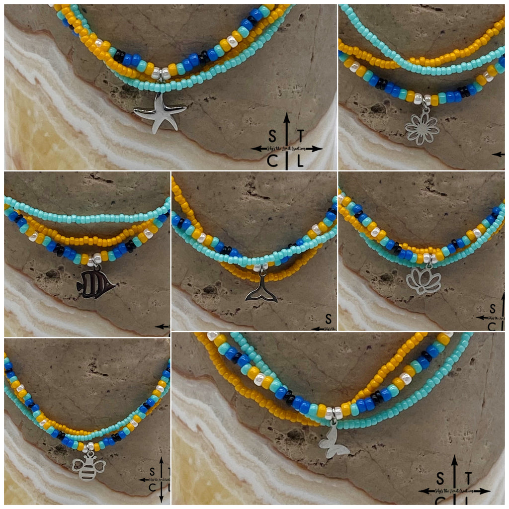 Blue Turquoise Yellow Black White Gold Stretchy Anklet