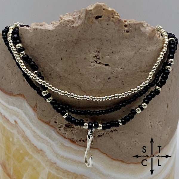 3 hand beaded stretchy anklets sign me! No clasp just slip them on and you are ready to go! Wear all three or just one, the choose is yours. Grab a couple at this price you cannot go wrong! One of the anklets has a charm and the bead colors in all three ankles are black. Pick from stainless steel star fish, flower, fish mermaid tail, lotus flower, butterfly, bee, hook, sun, cactus, star and dragon fly