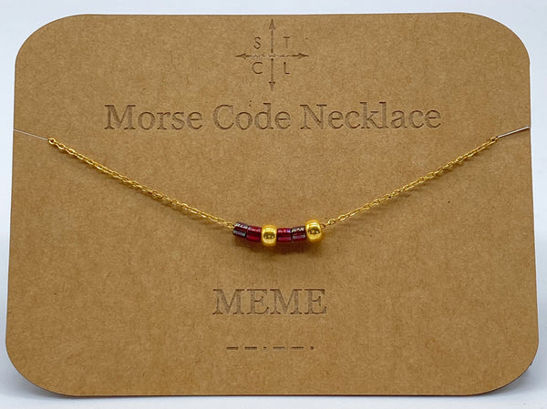 This Morse code necklace is 16.5 inches long and comes with a 2-inch extender chain, resulting in a total length of 18.5 inches. The chain is made of gold-plated stainless steel. You can choose your beads to be pearl, turquoise, white, maroon, or black.